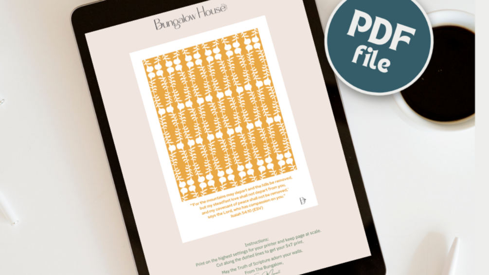 For more art and encouragement visit bungalowhousestudio.com or subscribe to our weekly Tuesday Encouragements where you will see our new weekly scripture art print release. Subscribe here today:https://bungalow-house-studio.myflodesk.com/newslettersignup