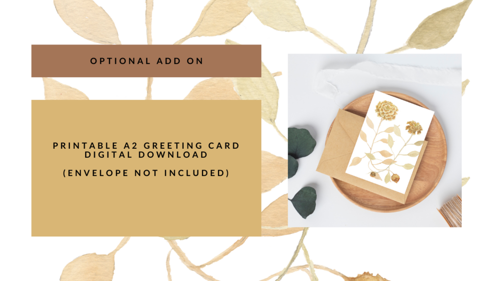 If you choose to upgrade by adding on the downloadable A2 card option, this is what the card will look like after you have printed, cut, and folded your card (envelope is not included):